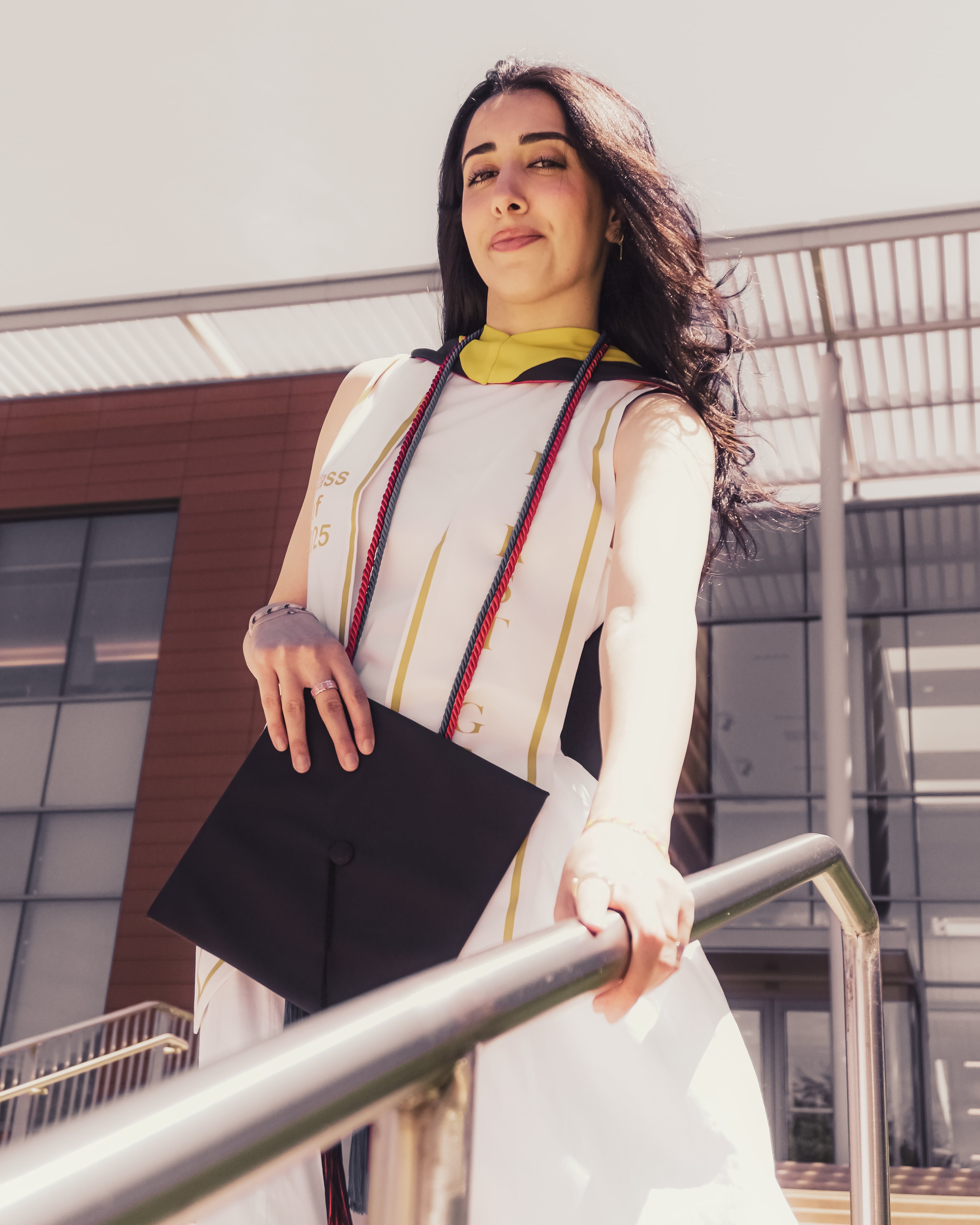 This series of graduation photos celebrates a graduate’s accomplishments with thoughtful, memorable imagery. Soft, warm lighting reflects pride and achievement, while creative compositions and angles highlight significant locations from her college experience. Details of her cap and gown are incorporated to complete the narrative, emphasizing both personal milestones and ceremonial elements. Shallow depth of field and carefully frozen movements focus attention on the graduate, while creative posing adds visual interest and energy. The final images capture the importance of her achievements, blending technical precision with emotional resonance to create a meaningful, polished portrait series that she can cherish.